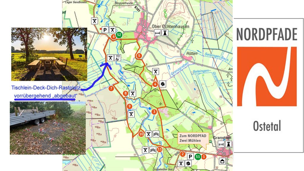 Vor knapp neun Jahren wurde am NORDPFAD Ostetal an dieser Stelle das Mobiliar vom ersten „Tischlein-Deck-Dich“-Rastplatz in der NORDPFADE-Wanderregion aufgestellt. Seitdem erfreuen sich zahlreiche Wanderer aus nah und fern an diesem großen Rastplatz aus massivem Eichenholz bei einer Bewirtung durch unsere Partner-Gastbetriebe oder bei einem eigenen, mitgebrachten Picknick.
