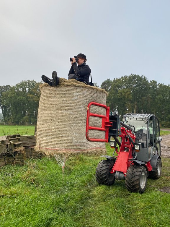 Dass Bisons zu Cord passen, das sieht man auf dem Hof sofort, denn unverkennbar wohnt dort ein großer Amerika-Fan. Und ein sehr netter dazu: Freundlicherweise wurde ich auf dem neuen Heuballen zur Weide gefahren.