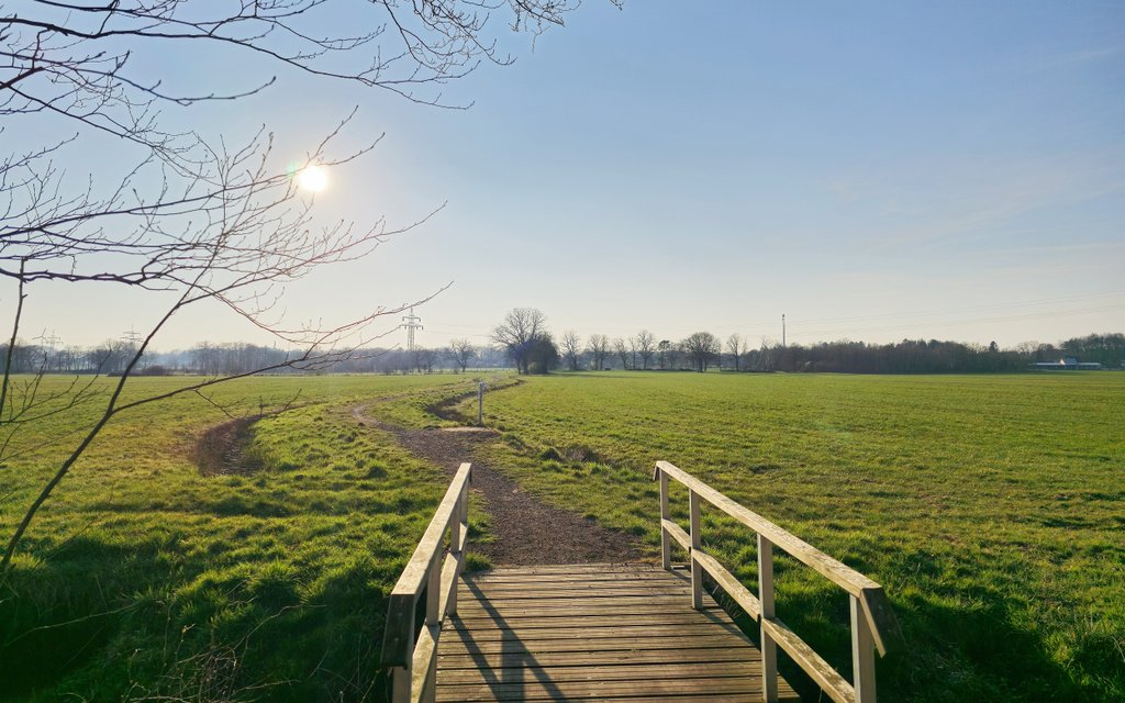 Auch wandern kannst du in der Gegend wunderbar. Der NORDPFAD Hölzerbruch-Malse führt zwar nicht direkt an der Kirche vorbei, befindet sich aber ganz in der Nähe. Zu erwähnen ist, dass Ingrid von Issendorff bereits alle 24 NORDPFADE gemeistert hat. Klasse! In der Nähe findest du ebenfalls den ORTSWEG Rund um Oerel. Für einen Spaziergang bietet sich ebenfalls der Kirchweg hinter der Kirche an. Der Blick geht in die weite Landschaft Richtung Basdahl. Früher, oder vielleicht auch noch heute, sind die Gläubigen über diesen Weg zum Gottesdienst gekommen.