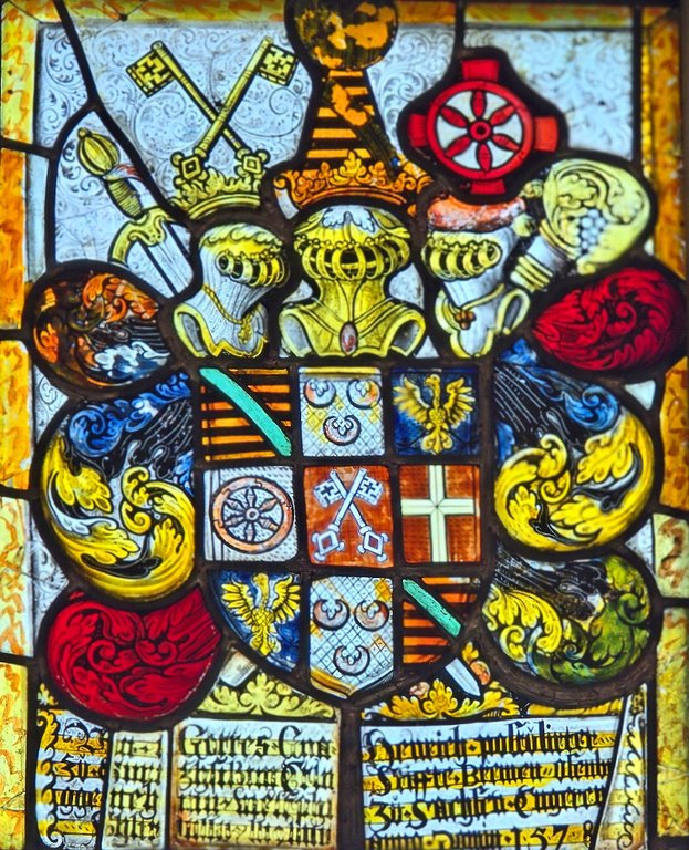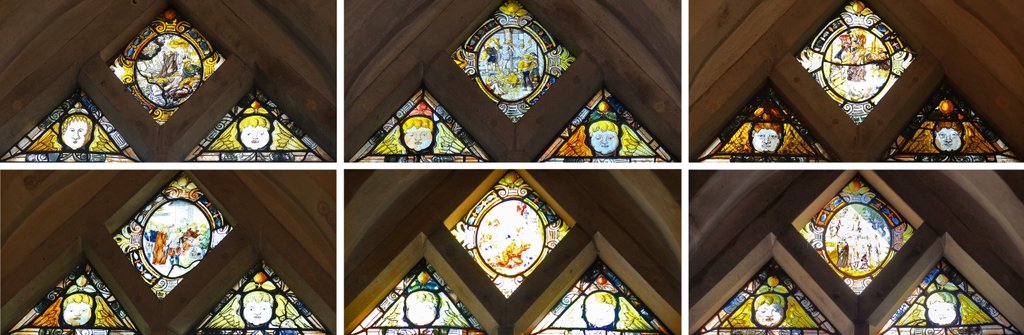 Die sechs großen Fenster zeigen in den oberen Spitzen die Oeser Passion. Das ist die Leidensgeschichte Jesu bis zur Kreuzigung. Die Passions-Motive waren verwittert und wurden mal für ganze 100.000,00 Mark restauriert. Seitdem sind sie durch eine weitere Scheibe geschützt und werden belüftet, denn die Vorlage von fünf der Motive stammt von niemand Geringerem als Lucas Cranach dem Älteren. Gemalt hat er sie nicht selbst, da er dann nicht mehr lebte, aber ich finde das auch so wahnsinnig spannend. Leider sind einige nicht so gut zu erkennen, und auch mit zu wenig Leidenschaft fotografiert. Ich hoffe, sie haben die richtige Reihenfolge: