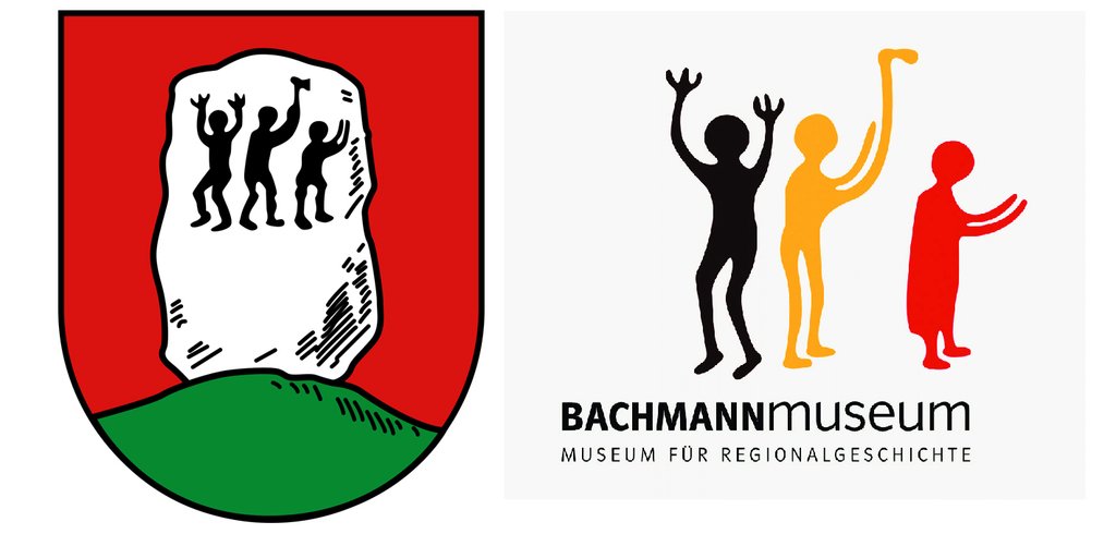 Jedenfalls wurden die drei Gesellen auf dem Wappen von Anderlingen ganz kreativ wiedergegeben. Da hat es jemand nicht so genau genommen. Nachvollziehbarer sind sie dagegen im (bisherigen) Logo des Bachmann-Museums.