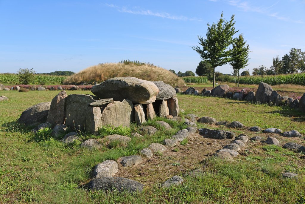 - Zwischen 1.700 und 1.400 v. Chr., in der frühen Bronzezeit, wurde der Grabhügel angelegt. Der Steinhaufen, den du in der Mitte des Platzes siehst, diente dabei als Unterbau für einen Baumsarg.