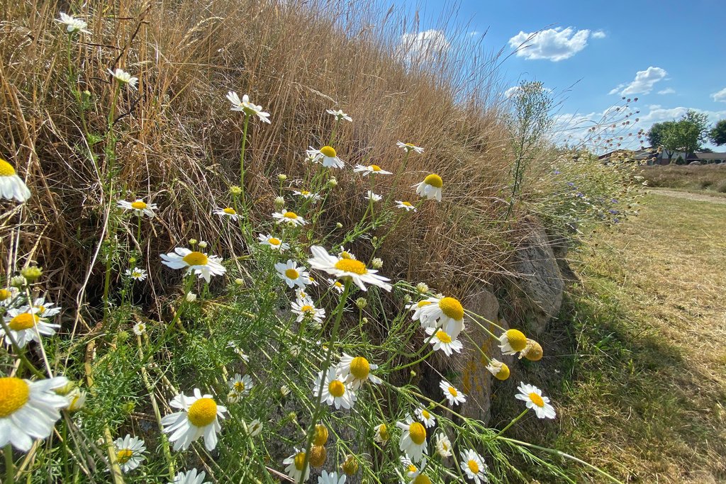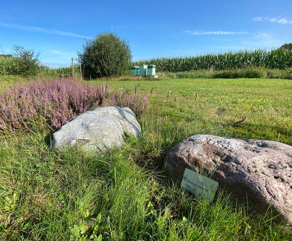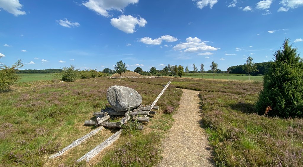 Am markantesten ist auf dem Gelände der neu aufgeschüttete Grabhügel. Drumherum sind ganz viele Steine platziert, die auch benannt werden, wie der Konglomerat. Da kannst du noch eine Menge lernen, und auch für Kinder sollte das spannend sein. Man kann sie, sobald sie lesen können, ja einfach mal auf die Suche nach dem Feuerstein schicken.