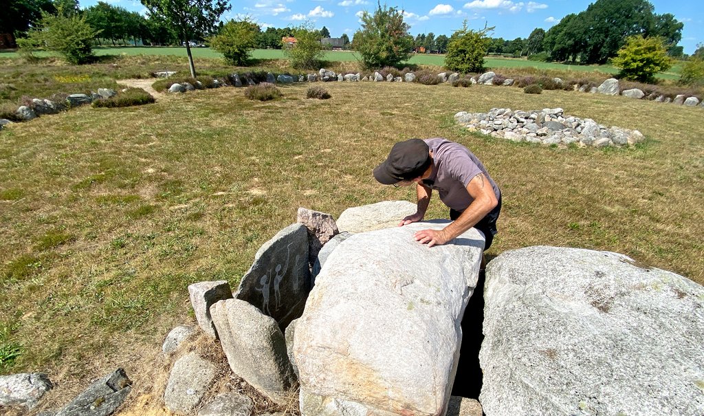 Der ursprüngliche Grabhügel wurde rekonstruiert, alles ist total sauber und ordentlich. Denn die Bedeutung des Fundes ist groß, der Bildstein von Anderlingen zählt zu den wichtigsten archäolgischen Funden Norddeutschlands. Denn dadurch wurden die europaweiten Beziehungen in der Bronzezeit sichtbar. Figürliche Darstellungen wie auf dem Bildstein gab es in ähnlicher Form nämlich in Schweden, genauer in Kivik und Sagaholm, ähnliche Felsbilder wurden in Bohuslän gefunden.