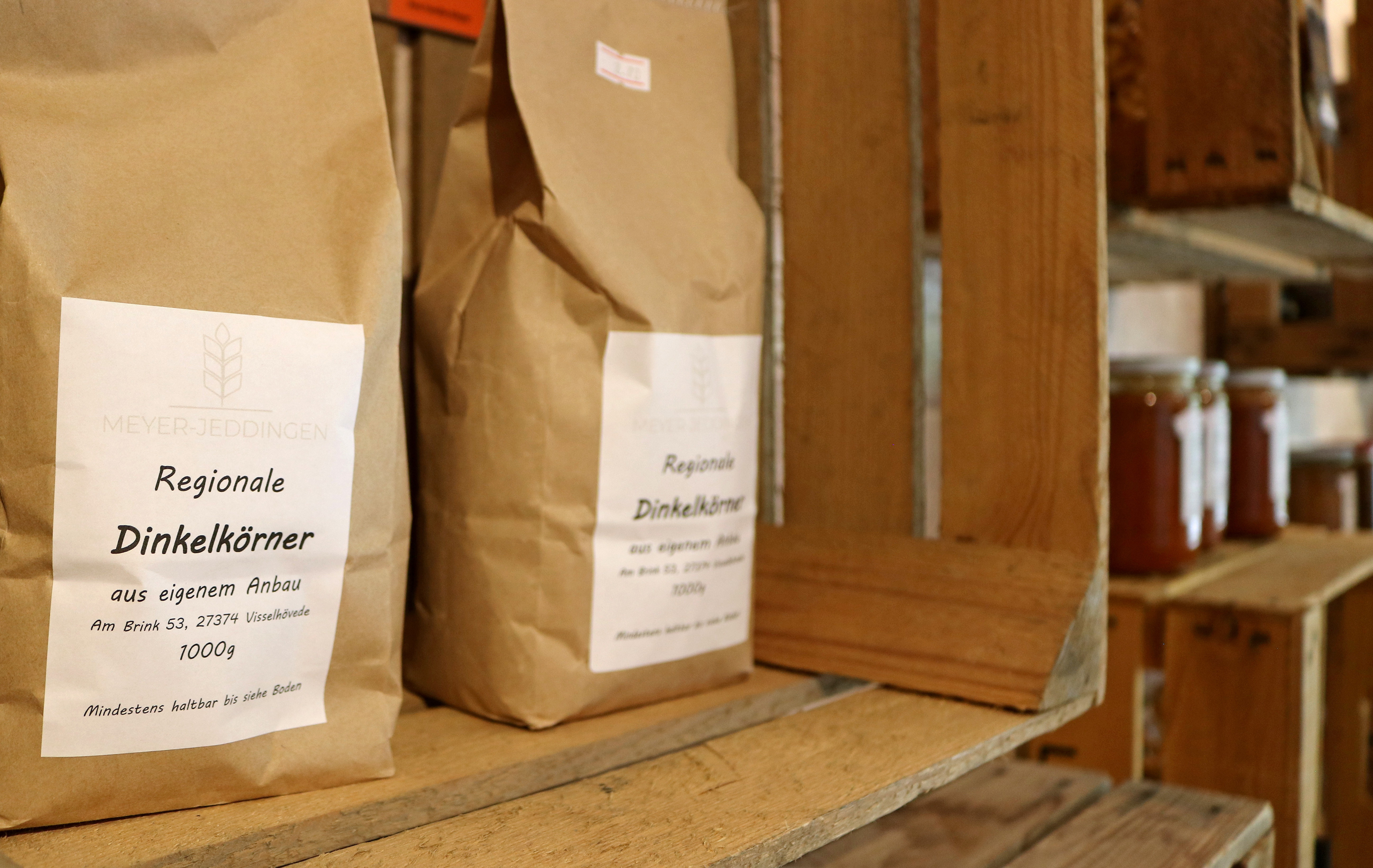 Im Hofladen gibt es jede Menge schöne und leckere Dinge. Eier, na klar. Und Nudeln mit den eigenen Eiern, die in der Region produziert werden. Dinkel aus Jeddingen, Eis von Röpers Hof aus Wohlsdorf (natürlich habe ich mir die Sorte Diva gekauft - lecker!), Käse aus der Milch der Nachbarskühe, gemacht von Heidis mobiler Käserei. Honig aus Scheeßel, Fleisch aus Rotenburg - und sogar Kunst aus der Region. Kartoffeln kommen dazu, frisches Gemüse aus dem eigenen Anbau und einiges mehr. Von solchen regionalen Kooperationen profitieren alle.