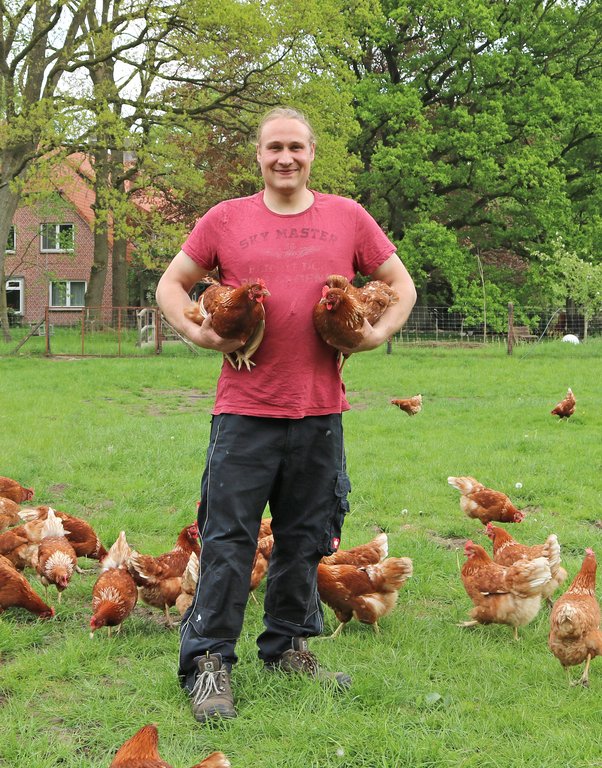 Familie Stein hat einen Bauernhof namens Lütens-Hof in Hassel-Hemsbünde. Mit Schweinen, Getreide, Gemüse, Hunden und - vielen Hühnern. Die Legehennen leben in zwei Hühnermobilen mit ganz viel Platz drumrum, und werden von Bodyguards bewacht. Ein lustiger tierischer Haufen und eine super sympathische Großfamilie teilen sich den Hof.