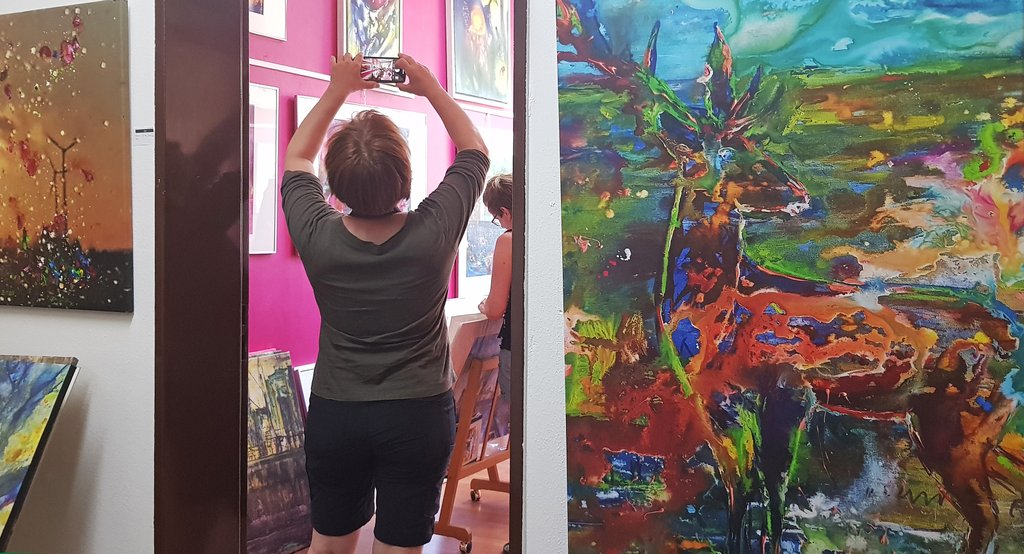 Willi hat uns Heimatkennerinnen und Heimatkennern viel von dem Projekt erzählt, und durch die drei Etagen mit den langen Fluren geführt. In zwei Ateliers haben wir einen näheren Blick werfen dürfen, weshalb diese besonders - auch in ihrer Unterschiedlichkeit - gezeigt werden. Wenn du da bist, dann mögen ganz andere Ateliers zur Auseinandersetzung mit Kunst einladen.