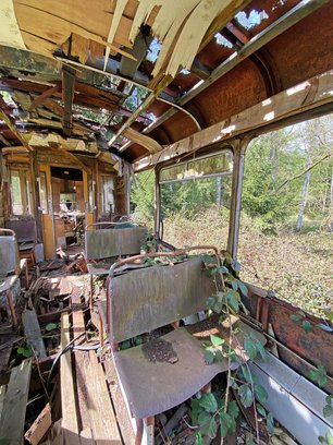 Zurück zur Geschichte: Die Straßenbahn fuhr bis 1982 in Bremerhaven. Sie wurde hier sozusagen geparkt und sollte laut Zeitungsbericht aus dem Sommer 2020 irgendwann restauriert werden. Ich kann mir nicht vorstellen, dass daraus noch etwas wird.