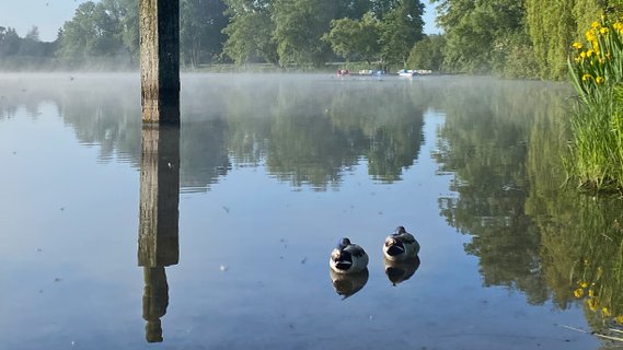 Im Bild zeigen dir die Damen auch gleich, wo die Welt der Sinne im Wimmelbild von Bremervörde verortet ist. Zwischen Stadt- und Kulturlandschaft, alles ist fußläufig erreichbar. Für mich ganz persönlich handelt es sich beim Vörder See mit dem grünen Drumherum ebenfalls um einen der schönsten Orte des Landkreises.