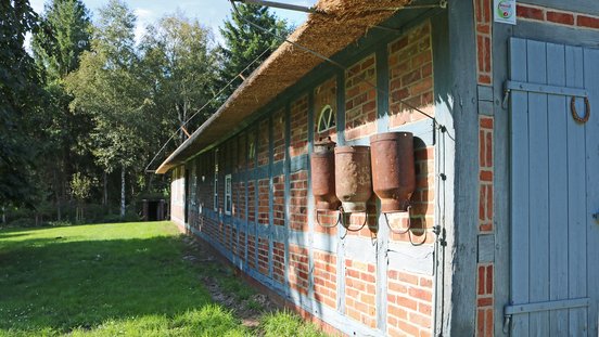 Im Lageplan, der sich im Buch "Museumsleitfaden und Festschrift des Heimatvereins Gnarrenburg" anlässlich des 25-jährigen Jubiläums anno 2013 befindet, siehst du die Anordnung der Gebäude. Die meisten findest du gleich auf den Bildern wieder, bis auf die Erdkeller, den Bienenstand, Schafstall und Maschinenschuppen. Es macht also durchaus Sinn selbst vorbeizuschauen, dann entgeht dir nichts! Das Außengelände ist übrigens jederzeit frei zugänglich.