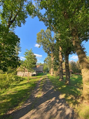 Im Lageplan, der sich im Buch "Museumsleitfaden und Festschrift des Heimatvereins Gnarrenburg" anlässlich des 25-jährigen Jubiläums anno 2013 befindet, siehst du die Anordnung der Gebäude. Die meisten findest du gleich auf den Bildern wieder, bis auf die Erdkeller, den Bienenstand, Schafstall und Maschinenschuppen. Es macht also durchaus Sinn selbst vorbeizuschauen, dann entgeht dir nichts! Das Außengelände ist übrigens jederzeit frei zugänglich.
