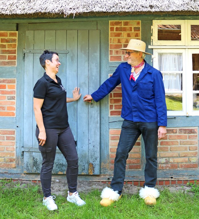 Übrigens sind die beiden natürlich nur zwei vom Heimatverein, die denselben hier vertreten. Auch der Verein Dopf & Grill, der gerade neues Leben auf den Moorhof bringt, fehlt an dieser Stelle. Ich hätte nicht alle zu Wort kommen lassen können, da wäre ich überfordert gewesen. Sorry!