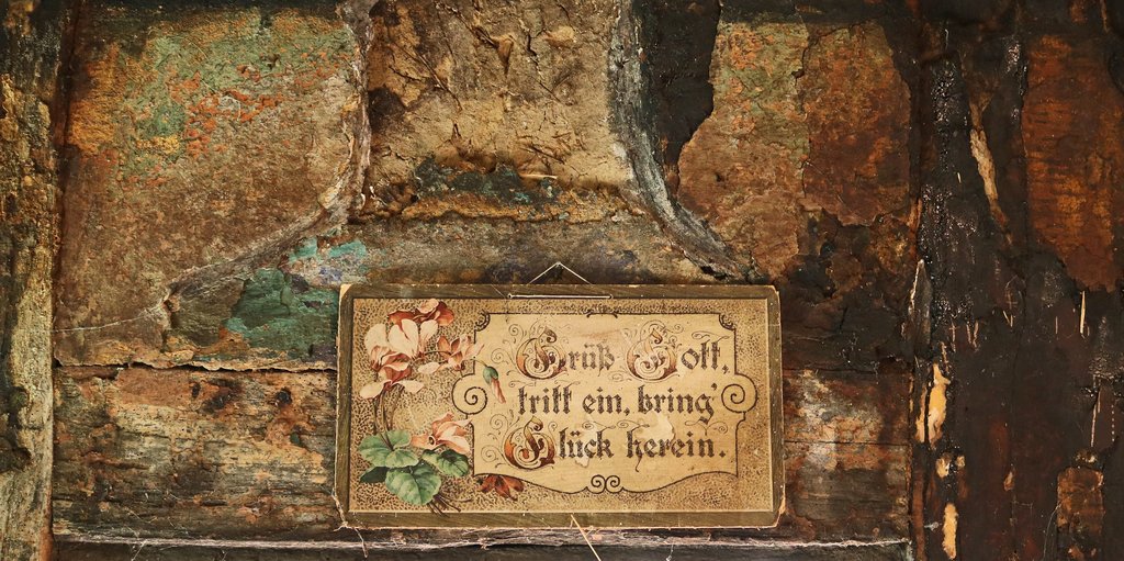 Auf dem Schild über der alten Stube wird aber einfach nur freundlich gegrüßt: "Grüß Gott, tritt ein, bring' Glück herein."