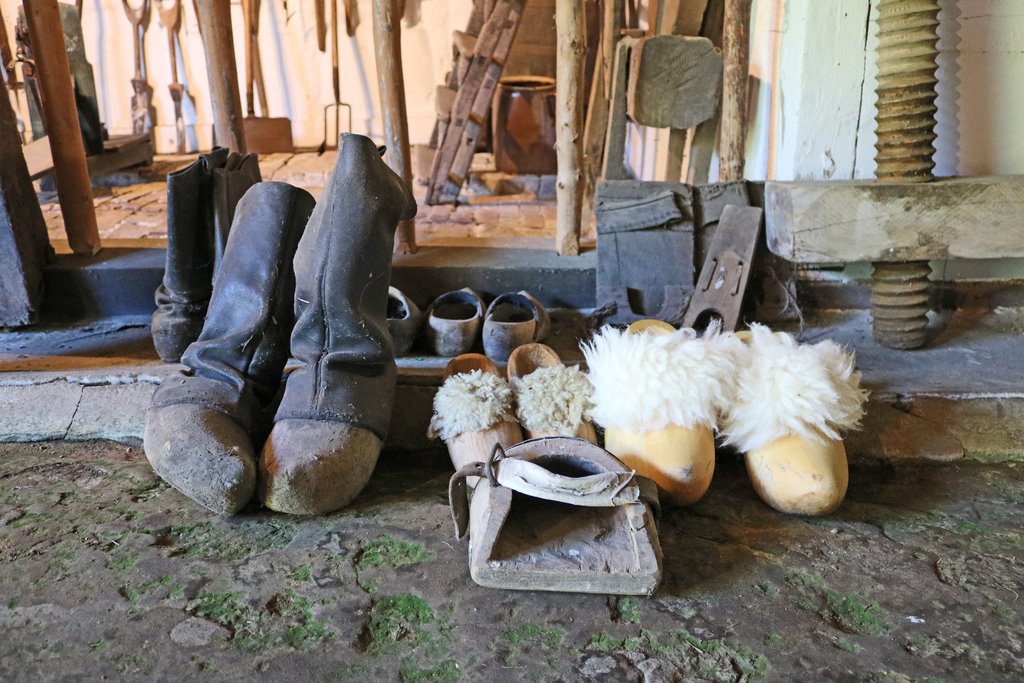 Im ehemaligen Schweinestall verbirgt sich allerhand Sammelsurium. Ausgestopfte Tiere, ein altes Puppenhaus mit Hollywoodschaukel - beides nicht bebildert - eine Werkstatt ... Die gab es so natürlich nicht auf diesen Höfen, wurde dem Heimatverein aber gestiftet und hat hier eine zweite Heimat gefunden.